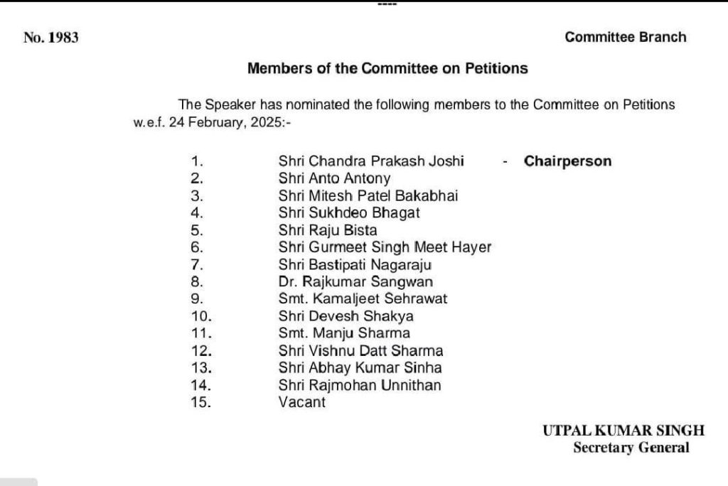 राकेश चतुर्वेदी, भोपाल। मध्य प्रदेश की खजुराहो सीट सेसांसद और भाजपा के प्रदेश अध्यक्ष वीडी शर्मा को लोकसभा की याचिका समिति का सदस्य मनोनीत किया गया है। लोकसभा की 15 सदस्यीय इस महत्वपूर्ण समिति में सीपी जोशी को सभापति बनाया गया है, जबकि अन्य 14 सांसद सदस्य के रूप में शामिल हैं। वीडी शर्मा याचिका समिति में शामिल होने वाले मध्य प्रदेश से एकमात्र सांसद बने हैं।