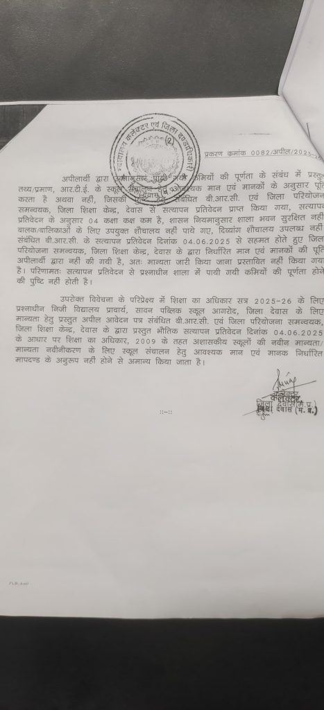 राहुल परमार, देवास। जिले में शिक्षा विभाग ने कड़ा कदम उठाते हुए 87 निजी स्कूलों की मान्यता रद्द कर दी है। यह कार्रवाई उन स्कूलों के खिलाफ की गई है जिन्होंने मान्यता प्राप्त करने के लिए फर्जी दस्तावेज प्रस्तुत किए, गलत जानकारियां दीं और बुनियादी सुविधाओं की अनदेखी भी की।