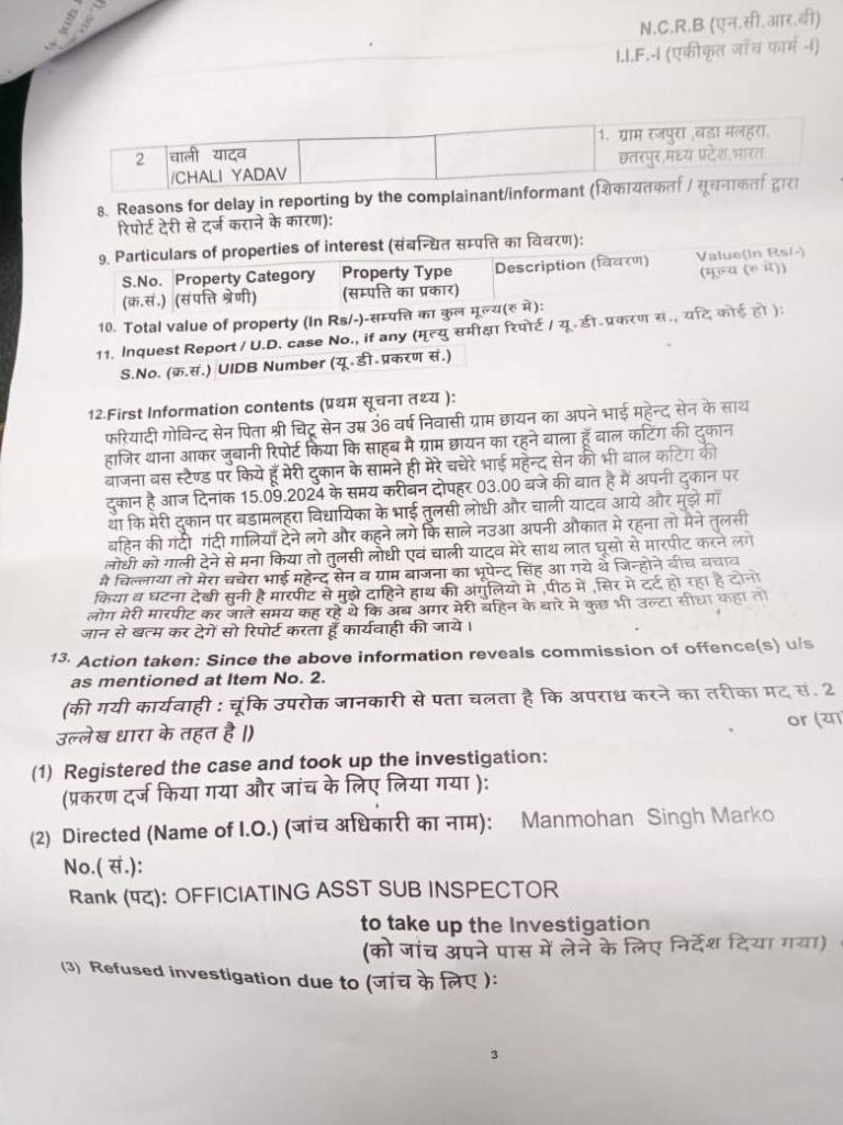 जानकारी के अनुसार आरएसएस (RSS) के उपखंड कार्यवाह और सैलून संचालक गोविंद सेन ने बाजना पुलिस थाना में एफआईआर दर्ज कराई है। लात घूंसों से मारपीट और गाली गलौज कर जान से मारने की धमकी देने का विधायक के भाई तुलसी लोधी व ड्राइवर चाली यादव पर आरोप लगा है। बाजना थाना पुलिस मामले की जांच में जुट गई है।