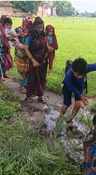 नाला पार करती महिलाओं और स्कूल जाते बच्चों को झेलनी पड़ी तकलीफ