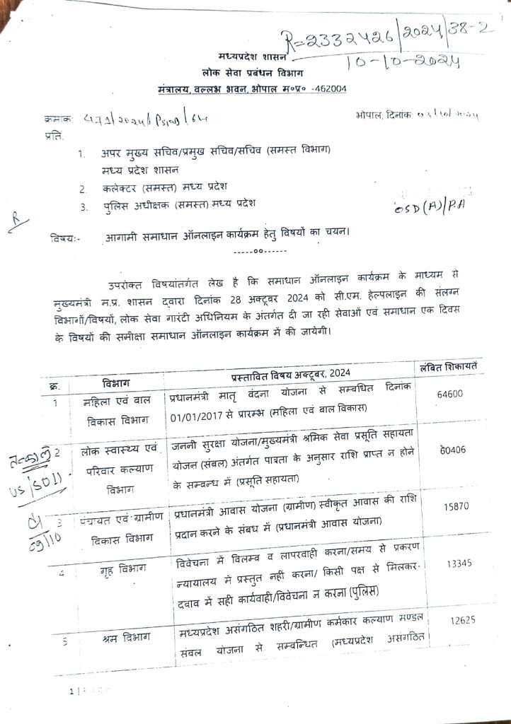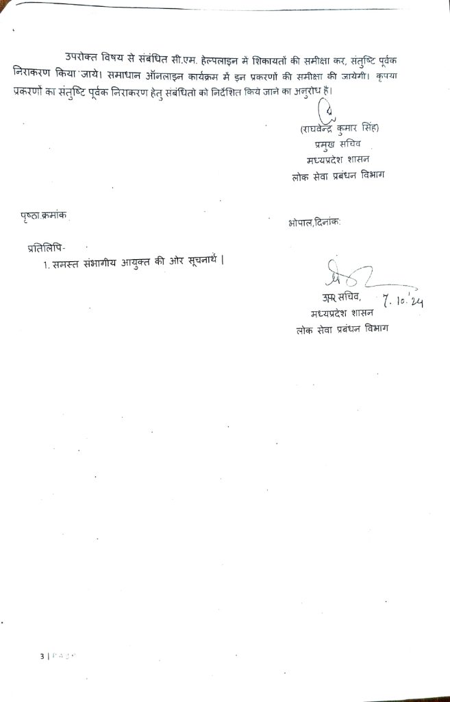 शब्बीर अहमद, भोपाल। मध्यप्रदेश में सीएम हेल्पलाइन से जुड़ी बड़ी खबर सामने आई है, यहां सीएम मॉनिट में समस्याओं का निराकरण नहीं होने वाली 3 लाख से अधिक शिकायत पहुंची है। मुख्यमंत्री सचिवालय के निर्देश के बाद सभी विभागों को लोक सेवा प्रबंधन विभाग ने आदेश जारी किया है।