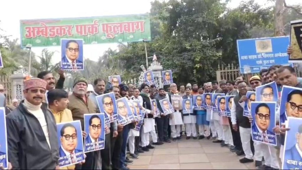 दरअसल आज प्रदेश के सभी जिलों में कांग्रेस ने संविधान निर्माता भीमराव अंबेडकर की फोटो हाथों में लेकर केंद्रीय गृहमंत्री अमित शाह माफी मांगों के नारे लगाए। इस दौरान ग्वालियर फूलबाग स्थित अंबेडकर की प्रतिमा को माल्यार्पण कर शहर के अलग-अलग इलाकों से होते हुए महाराज बाडा तक पैदल मार्च निकाला। इस दौरान शहर जिला कांग्रेस कमेटी अध्यक्ष देवेंद्र शर्मा के अलावा कोई भी सीनियर कांग्रेस लीडर नजर नहीं आया। BJP के रामेश्वर भदौरिया का आरोप है कि कांग्रेस ने हमेशा अंबेडकर का अपमान किया है। उन्हें चुनाव में हराया और कांग्रेस झूठ की राजनीति के साथ खोखले प्रदर्शन कर रही है। यही वजह है कि कांग्रेस के सीनियर नेता विधायक भी इस प्रदर्शन से दूरी बना ली। बीजेपी के आरोपों को पूर्व मंत्री लखन सिंह ने बुनियाद बताया है।