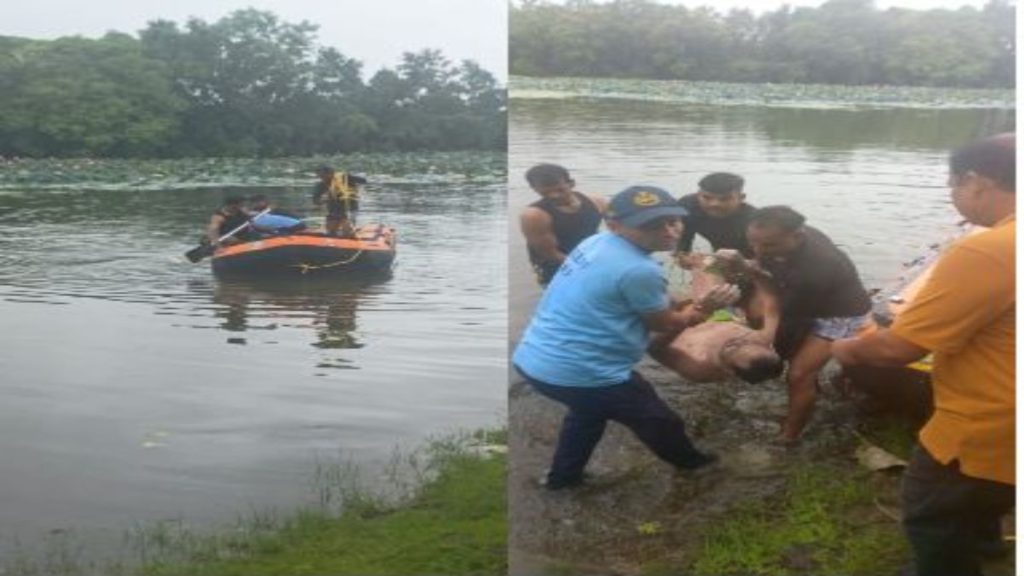 चंकी बाजपेयी, इंदौर। शहर के ग्रामीण क्षेत्र में आने वाले तालाब में माता रानी (देवी) के लिए कमल पुष्प तोड़ने गए उज्जैन के ज्योतिष शोध एवं विज्ञान संस्थान के डायरेक्टर की तलाब में डूबने से मौत हो गई। पुलिस ने कई घंटों तक रेस्क्यू कर शव को तालाब से बाहर निकाला।