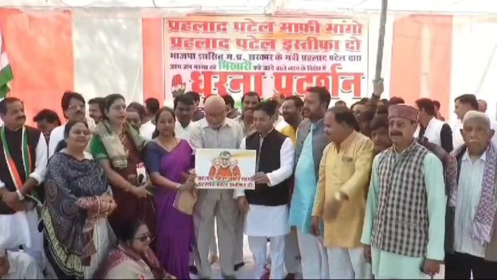 प्रदेश के कैबिनेट मंत्री प्रहलाद पटेल ने हाल ही में एक कार्यक्रम के दौरान लोगों को भीख मांगने की आदत वाला बयान दिया था जिसके खिलाफ प्रदेशभर में कांग्रेस अब प्रदर्शन कर प्रहलाद पटेल से माफी मांगने की मांग कर रही है। इसी कड़ी में ग्वालियर में भी फूलबाग चौराहे पर कांग्रेस ने बड़ा धरना प्रदर्शन किया। इस प्रदर्शन में कांग्रेस जिला अध्यक्ष डॉ देवेंद्र शर्मा, विधायक सतीश सिकरवार सहित अन्य कांग्रेस नेता और कार्यकर्ता मौजूद रहे। प्रहलाद पटेल माफी मांगों लिखी हुई तख्तियां लेकर यह प्रदर्शन किया गया। कांग्रेस ने आज अंतरराष्ट्रीय महिला दिवस होने के चलते चौराहे से गुजरने वाली आम महिलाओं के साथ ही कांग्रेस पार्टी की महिला नेत्रियों का भी शाल श्रीफल देकर सम्मान किया। जानकारी डॉ देवेंद्र शर्मा- अध्यक्ष शहर जिला कांग्रेस कमेटी ने दी।