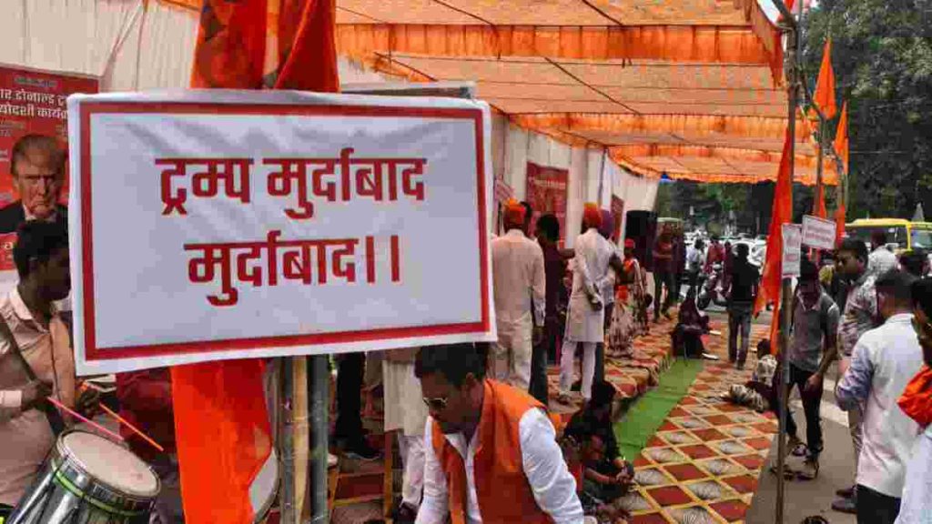 बता दें कि डोनाल्ड ट्रंप के खिलाफ सांकेतिक अंतिम संस्कार के बाद सांकेतिक मृत्यु भोज दिया गया। भगवा पार्टी ने 13 दिन पहले सांकेतिक अंतिम संस्कार किया था। अमेरिका द्वारा भारत में भारी भरकम टैरिफ लगाने का चौरफा विरोध हो रहा है। इसी के विरोध में भगवा पार्टी का आंदोलन का यह एक स्वरूप था।