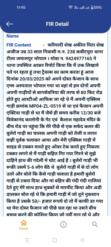दरअसल पत्रकार कुलदीप सिंगोरिया के खिलाफ कटारा हिल्स थाने में अड़ीबाजी की झूठी FIR दर्ज की गई है। कुलदीप को आधी रात को जबरन गिरफ्तार कर लिया गया जबकि जिस गाड़ी से एक्सीडेंट होना बताया गया है न तो वो कुलदीप की है न उस सफेद बोलेरो में कुलदीप बैठा था। संभवतः यह पहला मामला होगा जब एक्सीडेंट जैसे मामले में पुलिस ने गैरजामनती अड़ीबाजी जैसी गंभीर धाराएं लगा दी है।