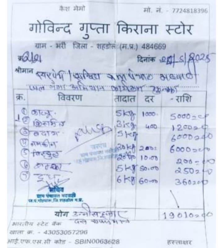 अजयारविंद नामदेव, शहडोल। वर्षा के पानी को बचाने के लिए सरकार और प्रशासन द्वारा जल गंगा संवर्धन अभियान चलाया जा रहा है। अभियान भले ही पानी बचाने के लिए शुरू किया गया है, लेकिन जिले की भदवाही पंचायत में तो यह अभियान घी-बादाम पिलाओ और अफसरों को खुश करो योजना बन गया है। सरकारी चौपाल की छांव में जब गांव के कुएं, तालाब और नाले सूखे हैं, तो वहीं अफसरों की मेज पर काजू-बादाम, दूध-घी और नमकीन की बारिश हो रही है।