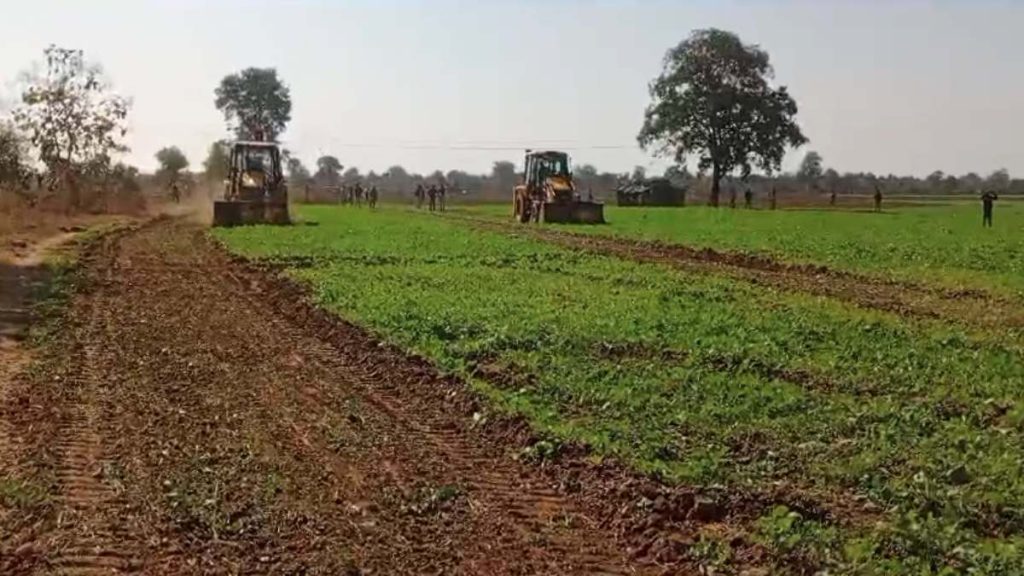 एसआर रघुवंशी, गुना। एमपी के गुना जिले में बुलडोजर कार्रवाई की गई है. हमीरपुर गांव में 300 बीघा से अधिक वन भूमि पर अतिक्रमण मुक्त किया गया है. यह कार्रवाई हाल ही में उस भूमि पर की गई, जिसे एक ही परिवार ने लंबे समय से कब्जे में रखा था और उस पर फसल उगाई थी. प्रशासन ने इस कार्रवाई में 10 बुजडोजर का इस्तेमाल कर फसलों को नष्ट किया और लगभग 6 घंटे तक अतिक्रमण हटाने का काम जारी रखा.