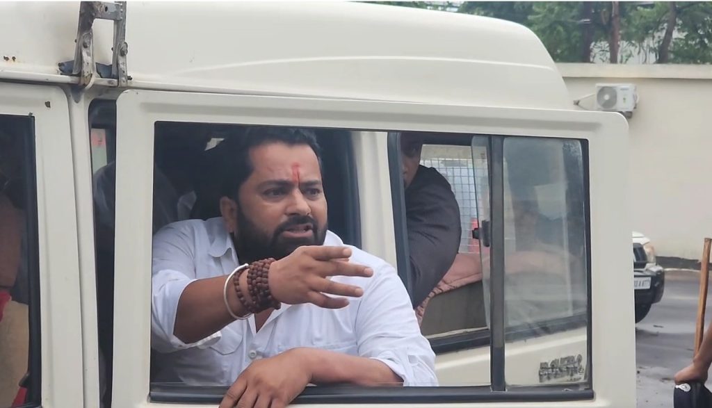 जिसके बाद पुलिस की गाड़ी में बैठे हुए करनी सेना जिला अध्यक्ष सुनील राजपूत ने करताना सब इंस्पेक्टर अनिल गुर्जर को चेतावनी दी। वह यह कहते हुए दिखाई दिए “वर्दी उतार के आ जाना… ठाकुर हूं डरूंगा नहीं।”