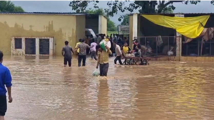 मुकेश मिश्रा, अशोकनगर। रातभर बारिश के चलते थोक सब्जी मंडी में 4 फ़ीट पानी भर गया। सब्जी से भरे वाहनों को निकालने में परेशानी उठानी पड़ी। जिसके बाद विक्रेताओं ने आरोन रोड पर बैठकर सब्जियां बेचीं। जानकारी के बाद जेसीबी लेकर नगर पालिका अध्यक्ष नीरज मनोरिया मंडी पहुंचे और पानी निकासी का रास्ता बनाया।
