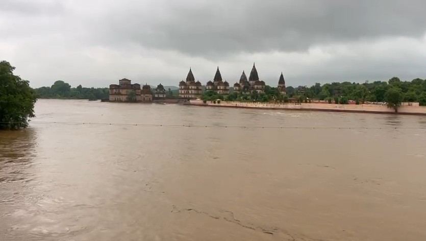 धर्मेंद्र यादव, निवाड़ी। जिले में लगातार 24 घंटे से भी ज्यादा समय से हो रही बारिश के कारण ओरछा से निकलने वाली बेतवा नदी उफान पर है। इसकी सहायक नदियों का जलस्तर बढ़ने के कारण बेतवा नदी का जलस्तर भी बढ़ गया है। प्रशासन नदी के घाटों पर मौजूद है। साथ ही नदी के पास ना जाने के लिए लगातार एनाउसमेंट किया जा रहा है।