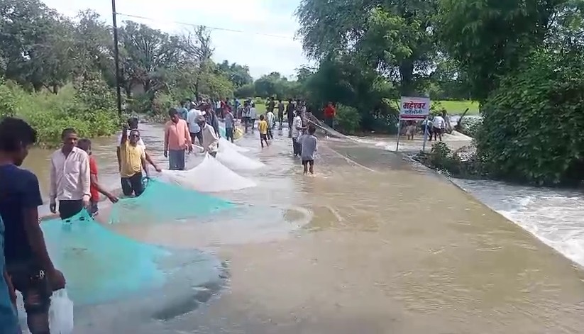 जान जोखिम में डालकर मछली पकड़ने लगे लोग
