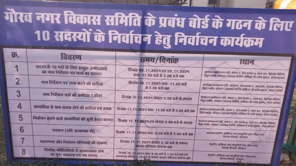 दरअसल मामला राजधानी भोपाल के कोलार इलाके की गौरव नगर विकास सोसायटी का है। यहां निर्वाचन के लिए