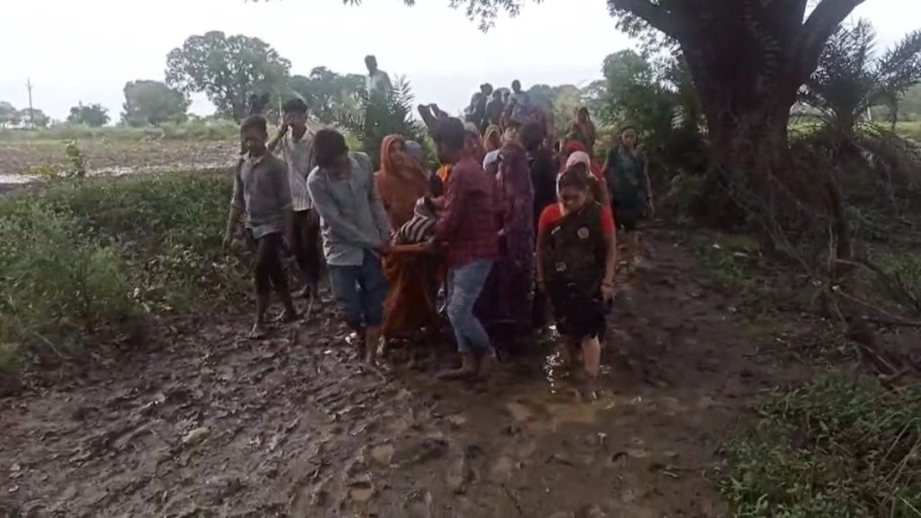 कुमार इंदर, जबलपुर। मध्यप्रदेश के जबलपुर जिले के एक गांव में खाट पर सरकारी सिस्टम वाली कहावत चिरतार्थ होते दिखी है। पक्की सड़क नहीं होने की वजह से प्रसूता को 2 से 3 किलोमीटर तक पैदल ले जाना पड़ा। गर्भवती महिला को कई किलोमीटर स्ट्रेचर पर पैदल लेकर चलना पड़ा। कीचड़ और दलदल भरे रास्ते से गर्भवती महिला को लेकर मुख्य सड़क तक ग्रामीण पहुंचे।