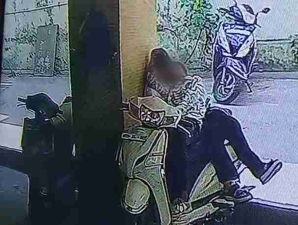 CCTV फुटेज में देखा जा रहा है कि लड़का-लड़की एक स्कूटी पर बैठे हुए हैं। इस दौरान दोनों लिपटकर एक दूसरे को किस कर रहे हैं। दोनों कभी बातें करते तो कभी एक दूसरे के गोद में अपना सिर रखते। इस दौरान एक अन्य युवक उनके सामने बैठा रहता था जो उन्हें आने-जाने वालों की खबर देकर आगाह करता था।