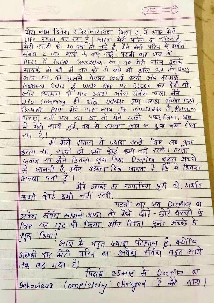 दिनेश मिश्रा ने अपने सुसाइड नोट में मध्य प्रदेश शासन और मुख्यमंत्री डॉ. मोहन यादव से यह भी निवेदन किया है कि देश में चल रहा है लव जिहाद मामले में कोई कठोर कार्रवाई का कदम सरकार को उठाना पड़ेगा। उसने लिखा,’लव जिहाद मामले में महिलाएं कभी किसी जिहादी के खिलाफ कुछ नहीं बोलती हैं। लेकिन सबूत देने के बाद भी कोई ठोस कार्रवाई भी नहीं होती है।