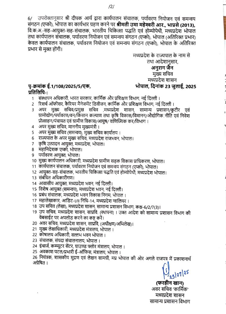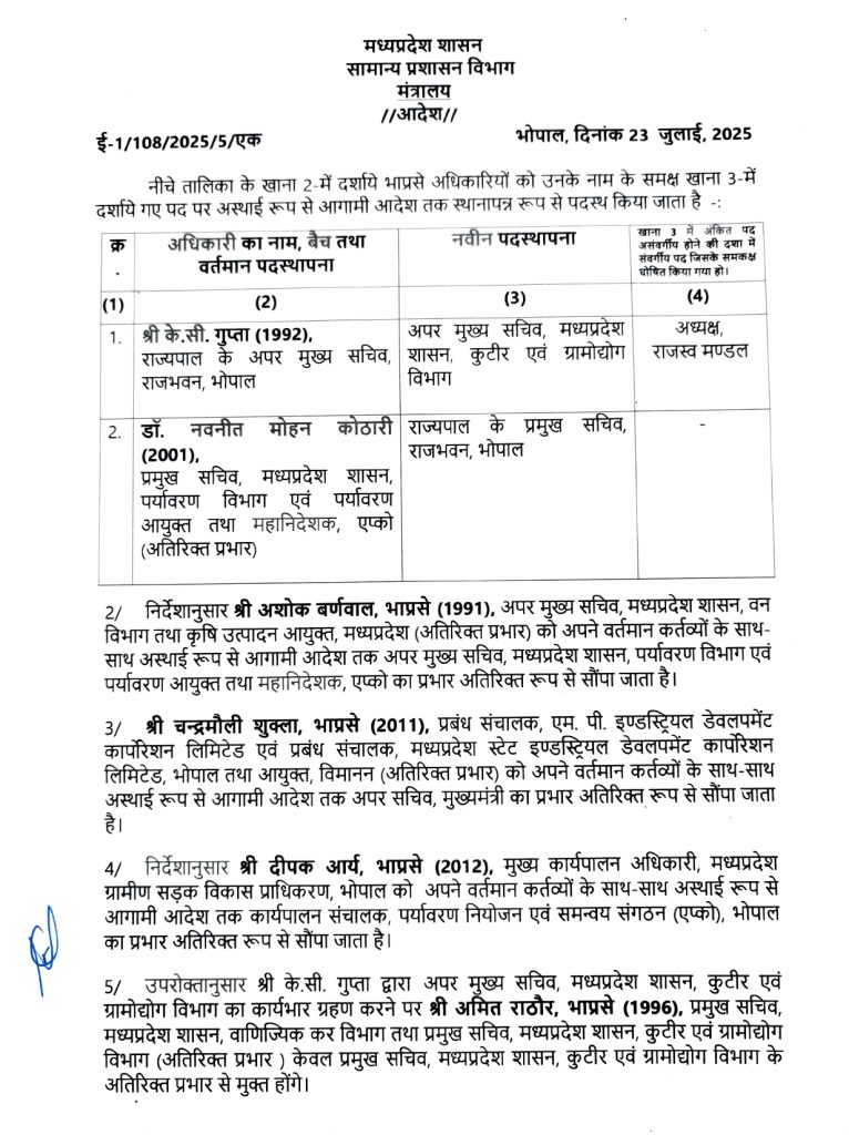 भोपाल। सिया दफ्तर में ताला विवाद को लेकर मुख्यमंत्री डॉ. मोहन यादव ने बड़ी कार्रवाई की है। दो वरिष्ठ आईएएस अफसरों को हटा दिया गया है। इसे लेकर सामान्य प्रशासन विभाग की ओर से आदेश जारी कर दिया गया है।