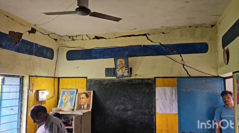 पवन राय, मंडला। मध्य प्रदेश के मंडला से बेहद शर्मनाक तस्वीर सामने आई है। यहां के बच्चे जर्जर स्कूल में पढ़ने को मजबूर हैं। लापरवाही का आलम यह है कि अब बच्चों ने प्रशासन से उम्मीद ही छोड़ दी और नए भवन के लिए गुहार लगाते हुए गणेश जी को आवेदन दिया है।
