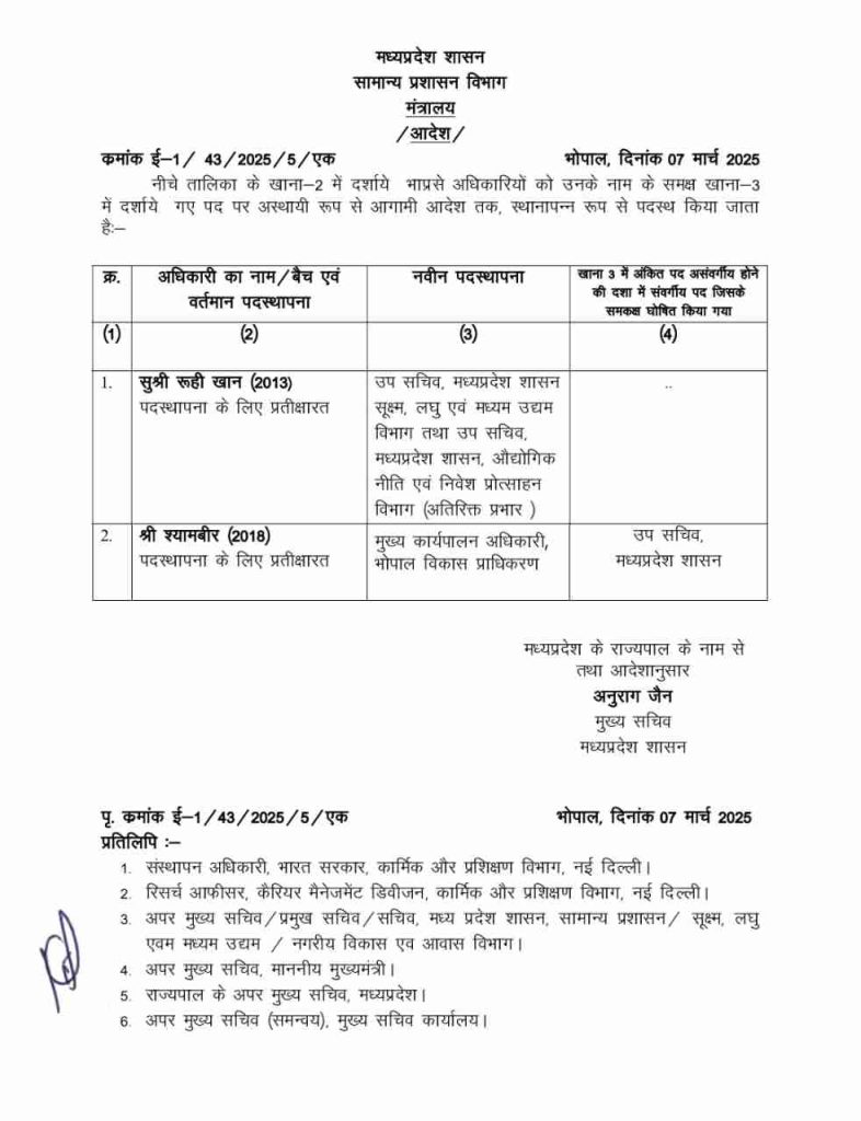 भोपाल। IAS Shyamveer Singh: मध्य प्रदेश सरकार ने प्रशासनिक स्तर पर बड़ा फेरबदल किया है। इस बीच मंत्री प्रह्लाद पटेल के दामाद को भोपाल विकास प्राधिकरण का मुख्य कार्यपालन अधिकारी बनाया गया है। इसे लेकर सामान्य प्रशासन विभाग की ओर से आदेश जारी कर दिया गया है।