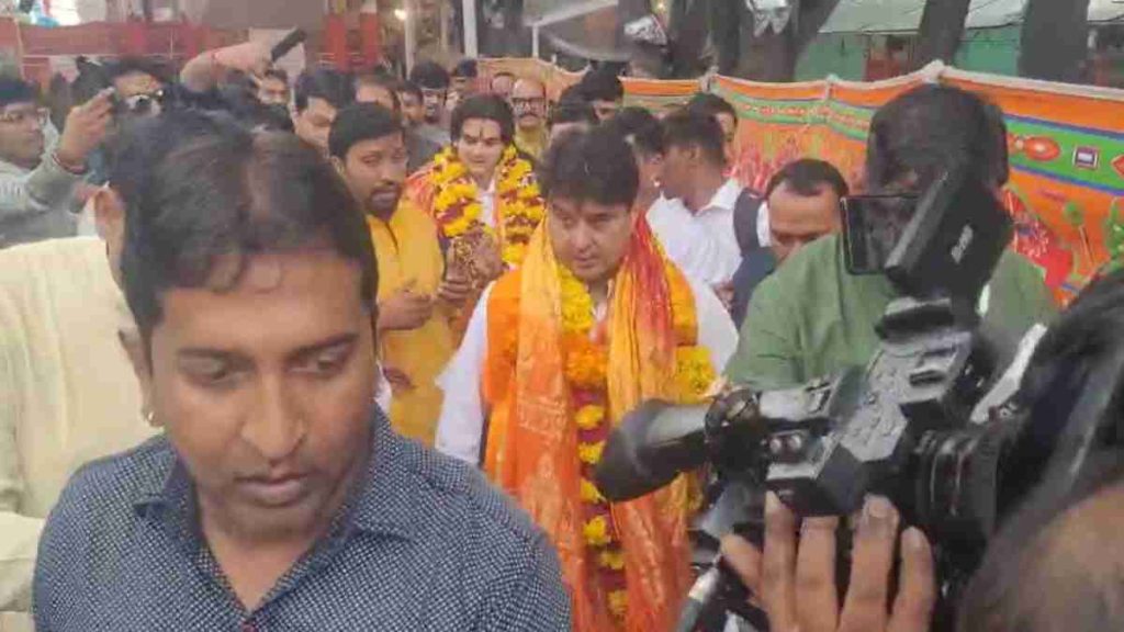 हेमंत शर्मा, इंदौर। केंद्रीय मंत्री ज्योतिरादित्य सिंधिया और महाआर्यमन सिंधिया आज प्रसिद्ध खजराना गणेश मंदिर पहुंचे। प्राचीन खजराना गणेश मंदिर में ज्योतिराज सिंधिया और महा आर्यमन ने भगवान गणेश का आशीर्वाद लिया। मंदिर के पंडितों ने मंत्रोच्चार के साथ विधि विधान से पूजा कराई।