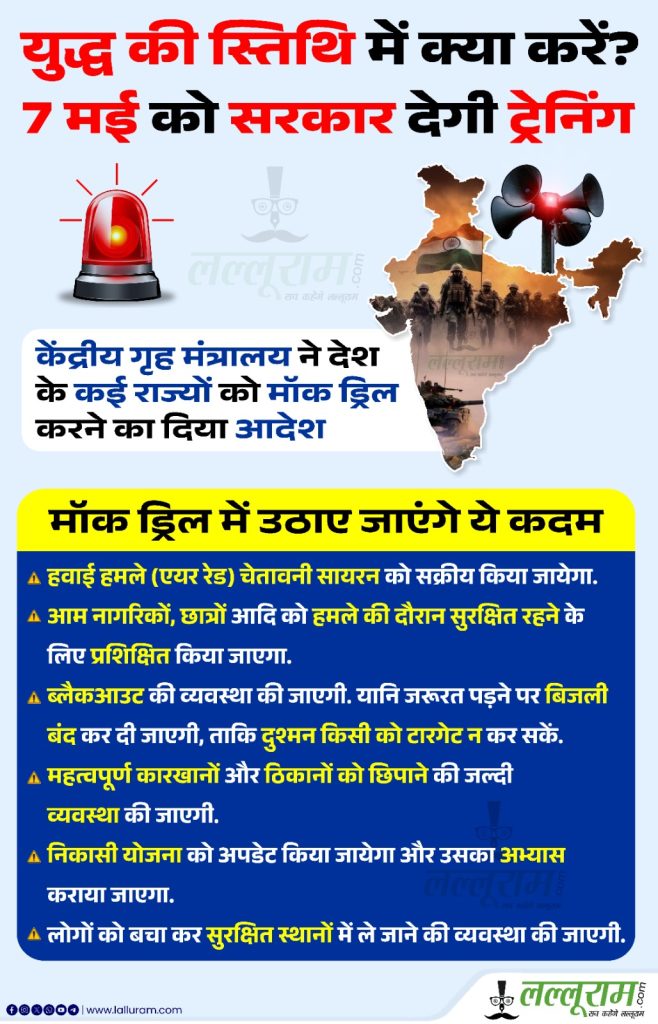 देश में पिछली बार ऐसी मॉक ड्रिल 1971 में हुई थी। तब भारत और पाकिस्तान के बीच युद्ध हुआ था। यह मॉक ड्रिल युद्ध के दौरान हुई थी।