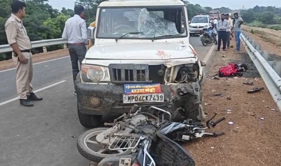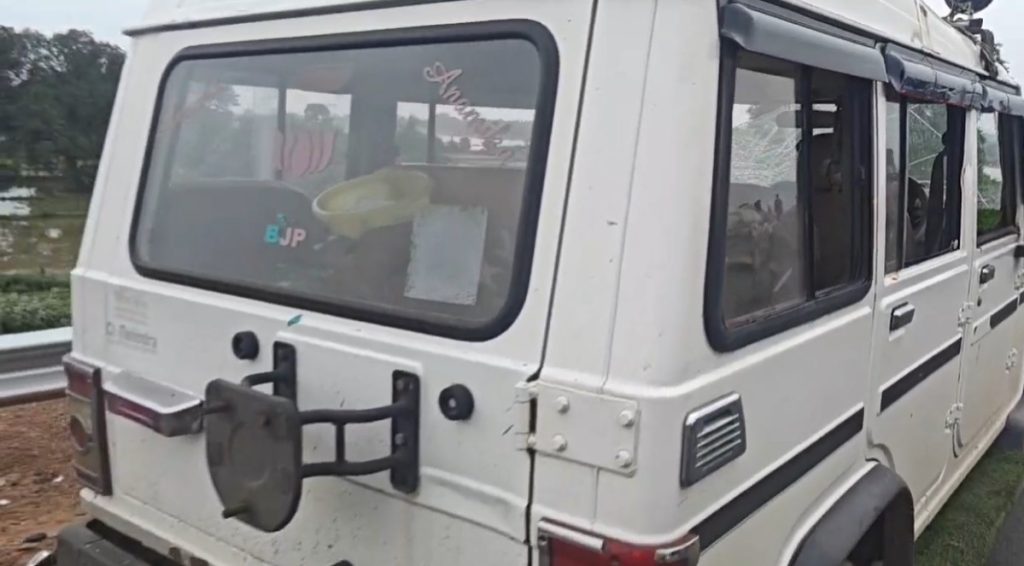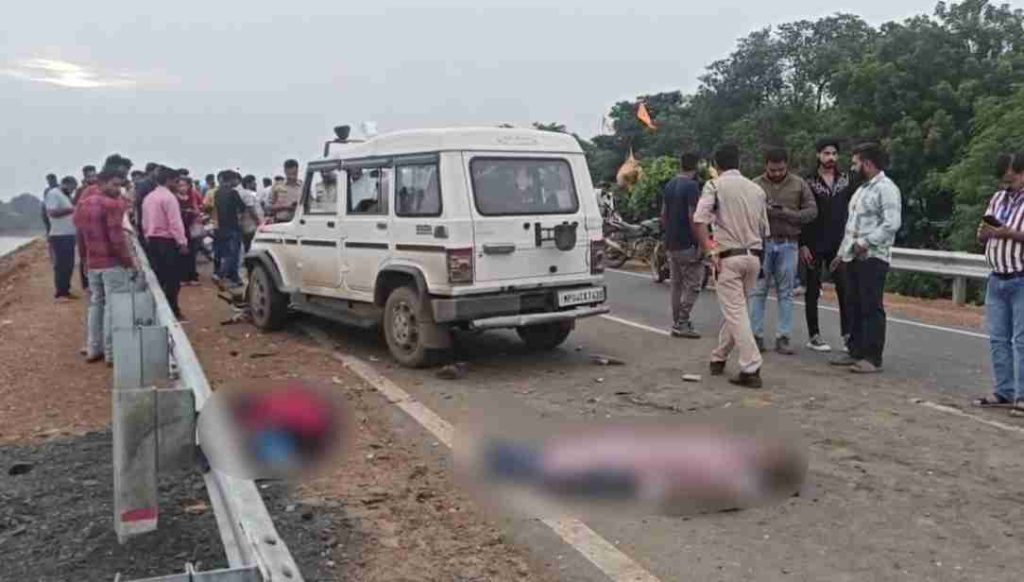 दर्दनाक हादसा नर्मदा ब्रिज पर हुआ है। हैरान करने वाली बात यह है कि बोलेरो के सामने की तरफ ‘राष्ट्रीय मानव अधिकार भ्रष्टाचार निवारण भारत राज्यमंत्री’ लिखा हुआ है। वहीं पीछे की तरफ कमल का निशान बना हुआ है और बीजेपी लिखा है।
