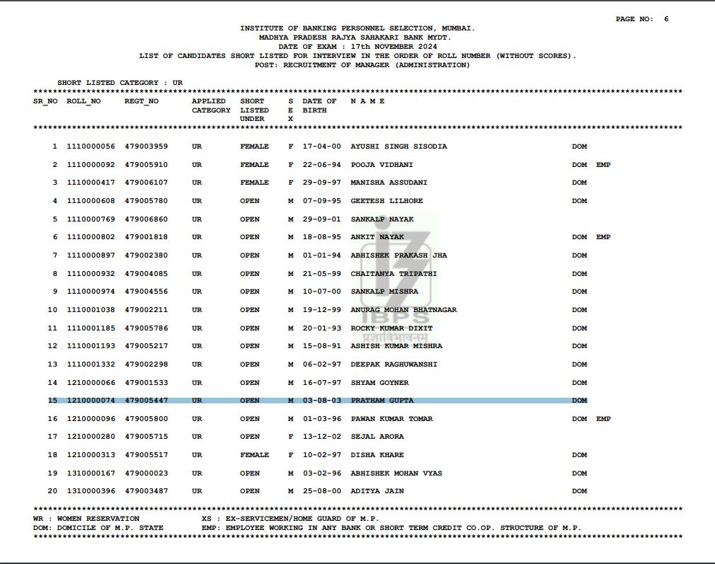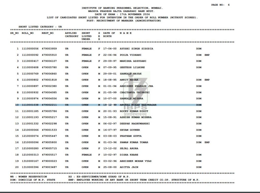 कुल 118 पदों पर भर्ती होना है। जारी मेरिट सूची में संयुक्त आयुक्त सहकारिता संजय मोहन भटनागर के बेटे अनुराग मोहन भटनागर, एमपी मनोज कुमार गुप्ता के रिश्तेदार प्रथम गुप्ता, बैंक के ओएसडी अनुराम मिश्रा के रिश्तेदार संकल्प मिश्रा और रिटायर्ड ज्वाइंट रजिस्ट्रार एसएन कोरी की रिश्तेदार मोना का नाम शामिल है। एक पद के लिए तीन अभ्यर्थियों को इंटरव्यू में बुलाने का नियम भी दरकिनार कर दिया गया है। एडिशनल सीईओ ओबीसी कैटेगरी में 4 पद के लिए सिर्फ दो अभ्यर्थी बुलाए गए। वहीं एडिशनल सीईओ सामान्य कैटेगरी में 4 पदों के लिए 5 अभ्यर्थी बुलाए गए हैं।