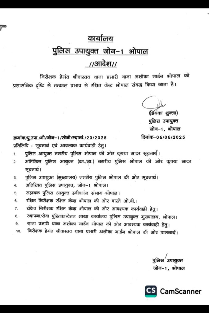 शब्बीर अहमद, भोपाल। मध्यप्रदेश की राजधानी भोपाल में टीआईटी कॉलेज छात्राओं से रेप और ब्लैकमेलिंग की जांच कर रहे थाना प्रभारी (टीआई) को हटा दिया गया है। मामले में SIT में जांच कर रहे अशोका गार्डन थाना प्रभारी हेमंत श्रीवास्तव को लाइन भेज दिया गया है। मामले में गंभीरता से जांच नहीं करने के कारण यह कार्रवाई की गई है। DCP जोन 1 प्रियंका शुक्ला ने आदेश जारी किया है। महिला आयोग की टीम ने भी जांच पर सवाल उठाए थे।
