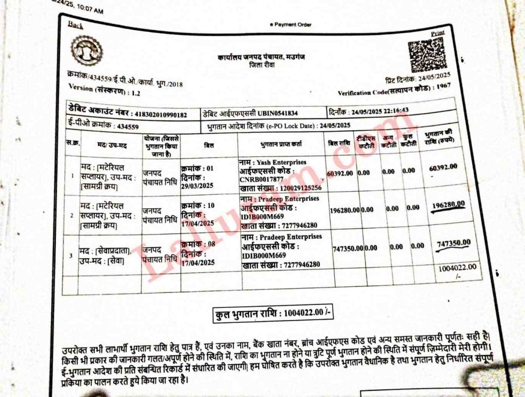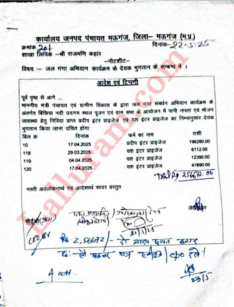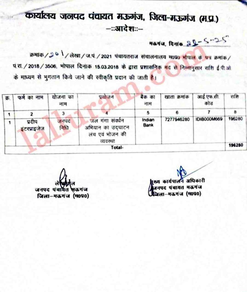 दरअसल, ताजा मामला रीवा जिले के मऊगंज का है। जहां 17 अप्रैल 2025 को खैरा गांव में जल गंगा संवर्धन अभियान का कार्यक्रम आयोजित हुआ था। इस कार्यक्रम में पंचायत एवं ग्रामीण विकास मंत्री प्रहलाद पटेल और पूर्व विधानसभा अध्यक्ष गिरीश गौतम शामिल हुए। कार्यक्रम महज 40 मिनट चला और जनपद पंचायत मऊगंज ने यहां 10 लाख रुपये खर्च कर दिए।