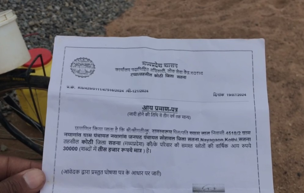 अनमोल मिश्रा, सतना। मध्य प्रदेश का सतना जिला इन दिनों आय प्रमाण पत्र बनाने को लेकर चर्चा में है। माना जा रहा है कि दुनिया के सबसे गरीब लोग सिर्फ यहीं पर रह रहे हैं। ऐसा इसलिए क्योंकि यहां किसी की सालाना आय 3 रुपए तो किसी की शून्य रुपए प्रमाणित करने का आय प्रमाण पत्र वायरल होता है।