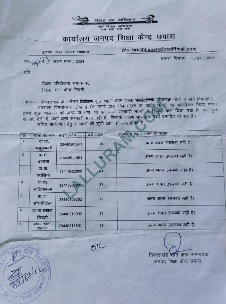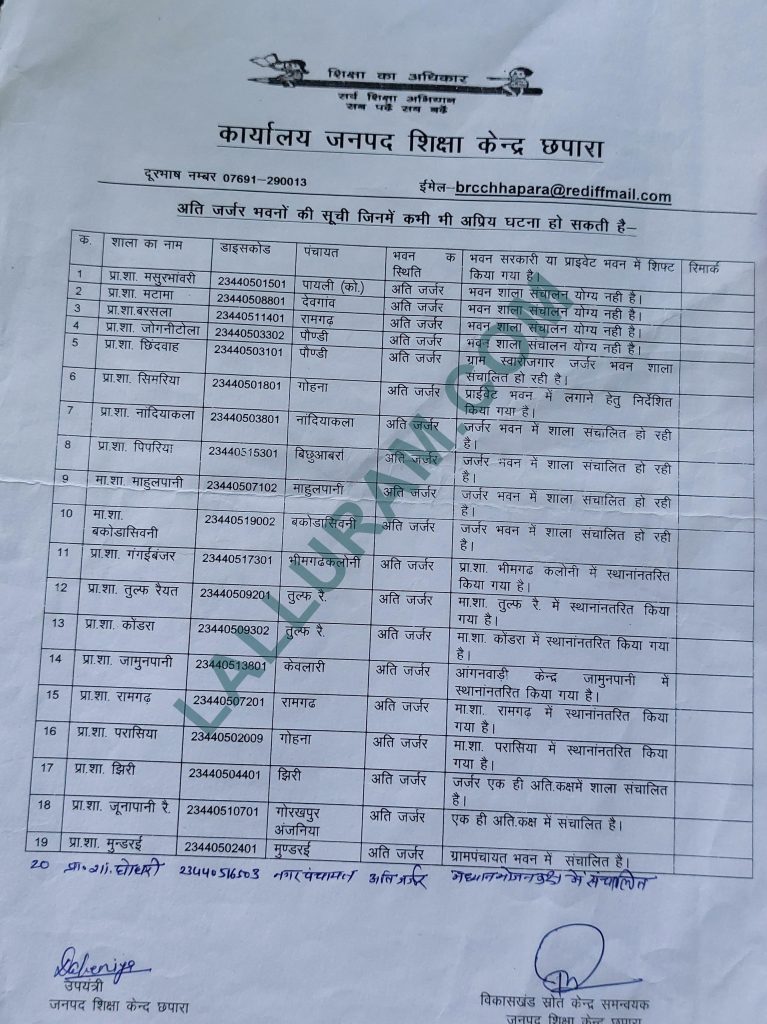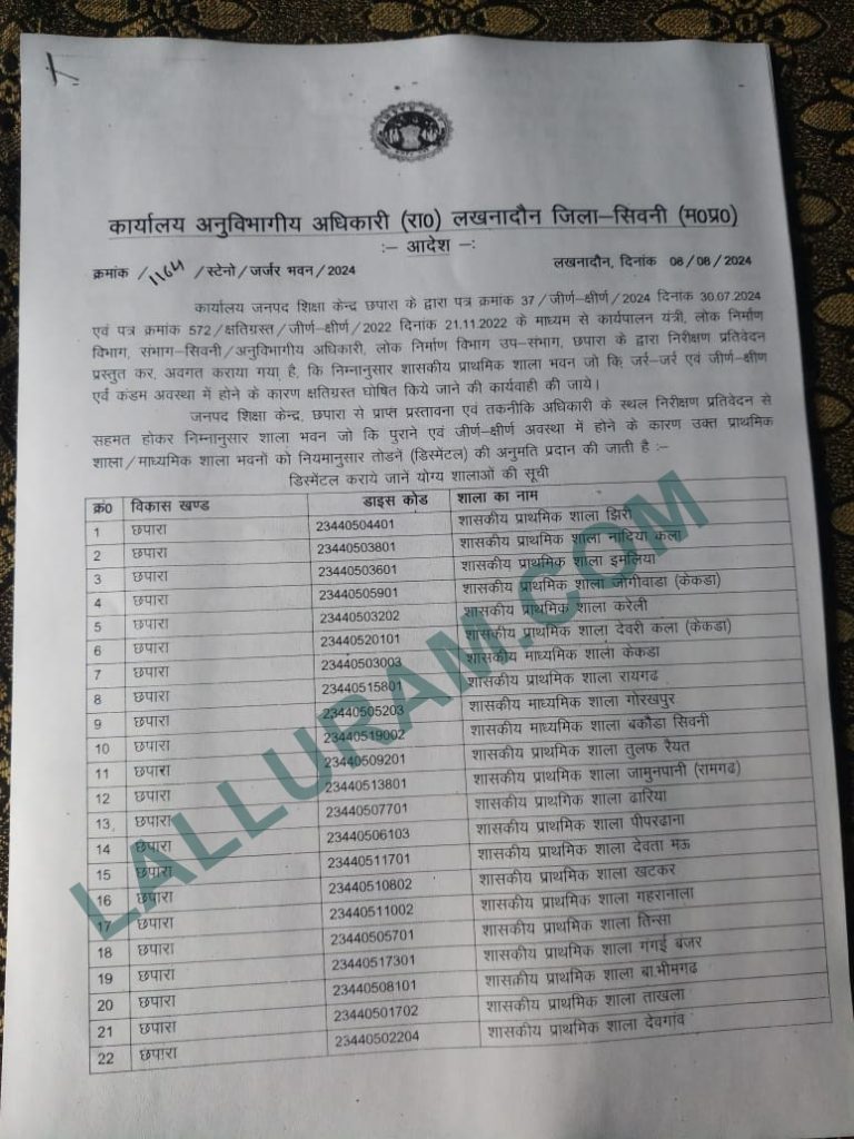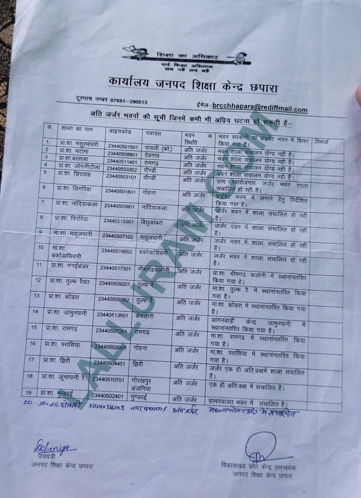 जिला शिक्षा अधिकारी की लिस्ट में बिल्डिंग तोड़ने के आदेश