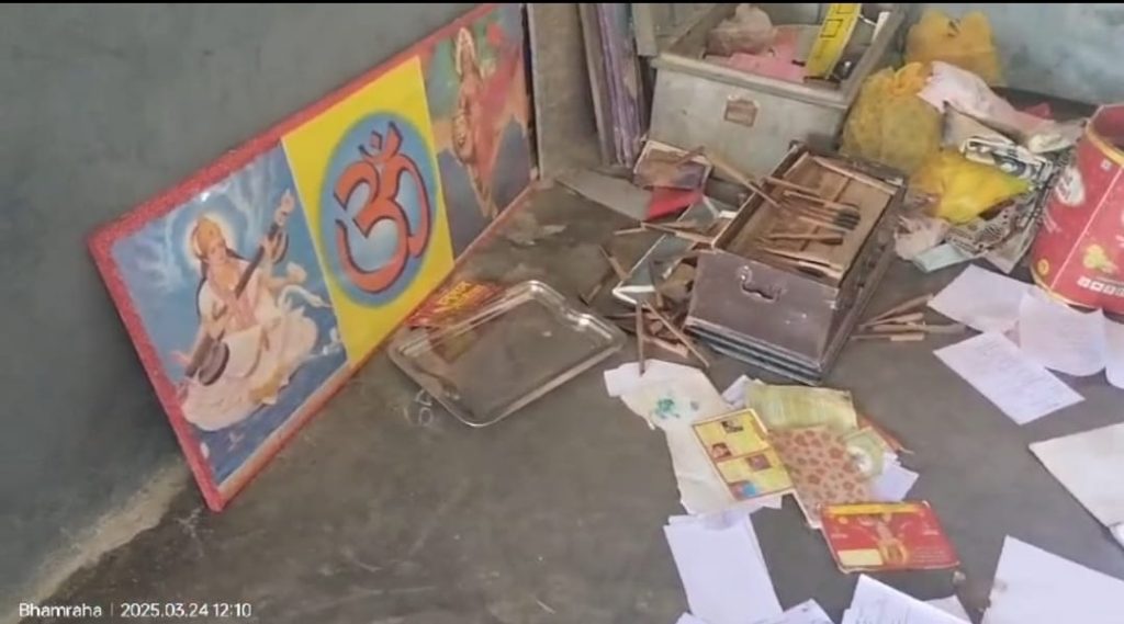 अजयारविंद नामदेव, शहडोल। मध्य प्रदेश के शहडोल जिले के ब्यौहारी थाना क्षेत्र में आखेटपुर विद्या भारती सरस्वती शिशु मंदिर स्कूल में अज्ञात बदमाशों ने तोड़फोड़ की है। बदमाश स्कूल के दरवाजे तोड़कर अंदर घुसे और पंखे तोड़ दिए। इसके अलावा, उन्होंने पूर्व राष्ट्रपति अब्दुल कलाम की तस्वीर तोड़कर फेंक दी, इतना ही नहीं स्कूल का रजिस्टर जलाने का प्रयास किया। इस घटना के बाद, ब्यौहारी पुलिस ने अज्ञात बदमाशों के खिलाफ मामला दर्ज कर लिया है और मामले की जांच में जुट गई है।