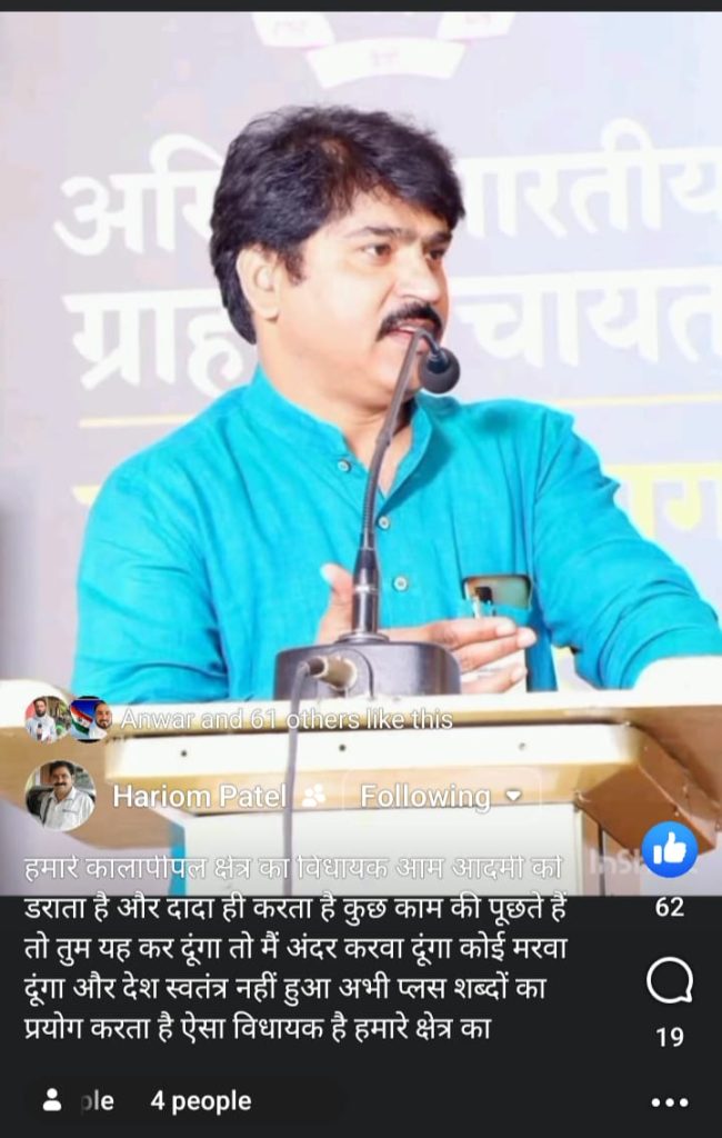 इस शिकायत पर हरिओम को अभिरक्षा में लेकर तहसीलदार कार्यालय कालापीपल में पेश किया गया. जहां से उसे जेल भेज दिया गया है. इसी विवाद को लेकर हरिओम की ओर से भी थाने में शिकायत आवेदन दिया गया है. जिस पर पुलिस ने जांच की बात कही है. इस मामले में विधायक घनश्याम चंद्रवंशी की कोई प्रतिक्रिया अभी नहीं आई है. पुलिस ने विधायक घनश्याम चंद्रवंशी की ओर से कोई शिकायत नहीं होना बताया है. इधर, मामले को लेकर पूर्व विधायक कुणाल चौधरी ने कहा कि विधायक सत्ता का दुरुपयोग कर रहे हैं.