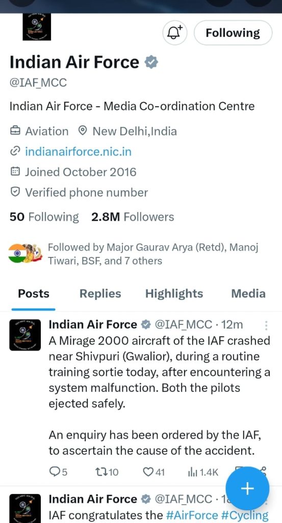हालांकि एक पायलट को चोटें आई है। इसके बाद घायल पायलट ने ही मामले की सूचना अपने वरिष्ठ अधिकारियों को दी। इधर ग्वालियर एयरफोर्स से दो हेलीकॉप्टर में सवार होकर आए अधिकारियों व जवानों ने अपने दोनो घायल पायलट को लिया और अपने साथ ग्वालियर ले गए। कुछ मौके पर जांच पड़ताल में जुटे है। घटना के कारणों का अभी पता नहीं चल पाया है। एयरफोर्स के अधिकारियों की मानें तो ब्लैक बॉक्स की जांच के बाद ही घटना के कारणों का पता चल पाएगा। घटना के बारे में ग्वालियर एयरफोर्स ने भी अपने एक्स अकाउंट पर जानकारी शेयर की है।