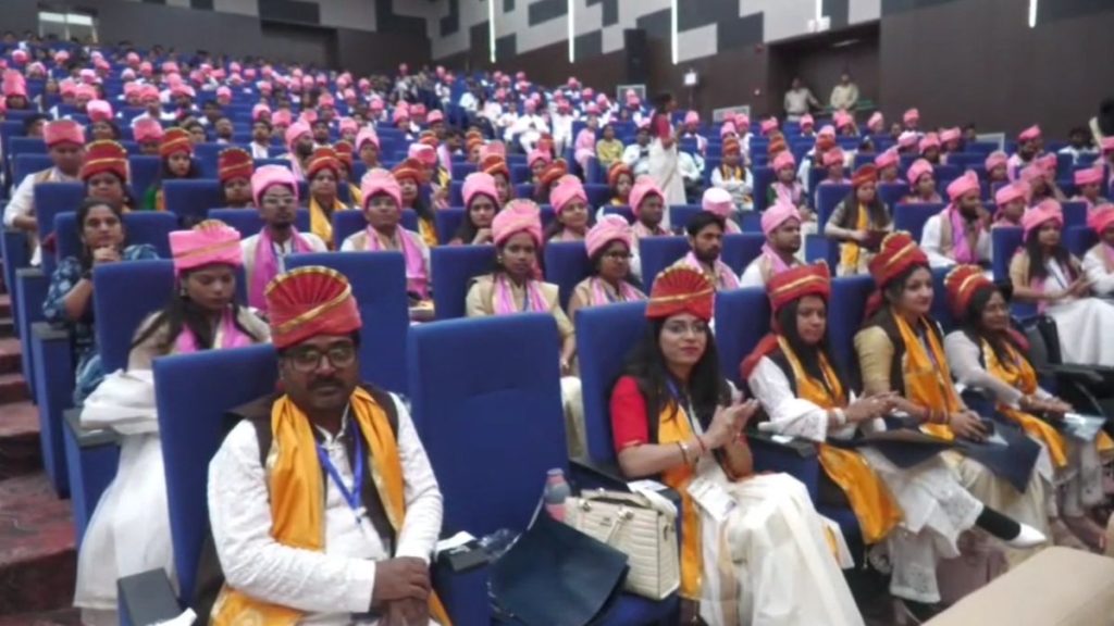 कर्ण मिश्रा, ग्वालियर। राजा मानसिंह तोमर संगीत एवं कला विश्वविद्यालय का छठवां दीक्षांत समारोह राज्यपाल मंगूभाई पटेल की अध्यक्षता में हुआ। कार्यक्रम के मुख्य अतिथि विख्यात कबीर लोक भजन गायक पद्मश्री कालूराम बामनिया रहे। कृषि विश्विद्यालय के दत्तोपंत ठेंगडी सभागार में आयोजित समारोह में 122 स्वर्ण पदक, 33 शोध उपाधियां प्रदान की गयी। इसके साथ ही 86 वर्षीय विश्वविख्यात तबला वादक किरण देशपांडे को डी.लिट की मानद उपाधि से भी सम्मानित किया। इस मौके पर किरण देशपांडे ने तबला वादन और कालूराम बामनिया ने लोकगीत की प्रस्तुति भी दी।