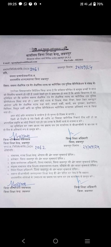 कुमार इंदर, जबलपुर। मध्यप्रदेश में आपराधिक रिकॉर्ड वाले टीचर स्कूलों में पढ़ी नहीं सकेंगे। स्कूलों में पढ़ाने वाले टीचर और नॉन टीचिंग स्टाफ का अब पुलिस वेरीफिकेशन जरूरी हो गया है। जिले के सभी शासकीय और अशासकीय शालाओं