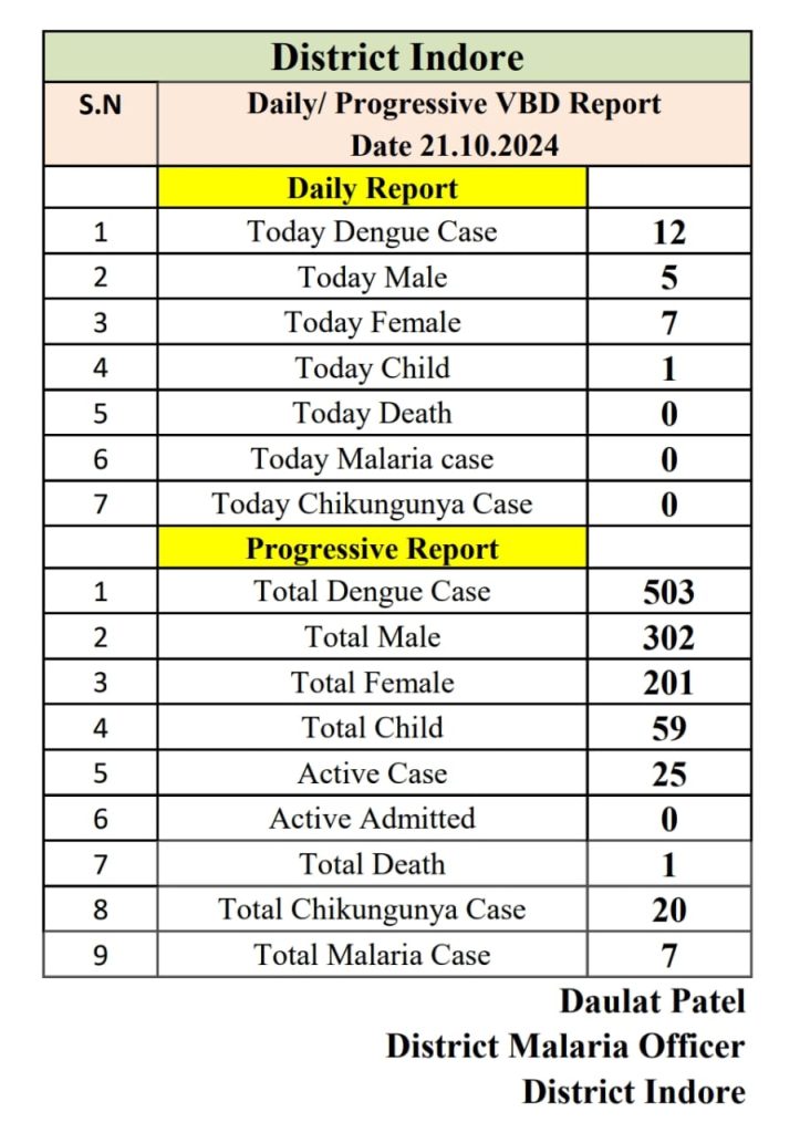 इंदौर में डेंगू के मामलों की संख्या अब 500 के पार पहुंच चुकी है, जबकि चिकनगुनिया के भी 20 से अधिक एक्टिव केस सामने आए हैं। जनता अब नगर निगम और स्वास्थ्य विभाग से यह सवाल पूछ रही है कि अगर ड्रोन तकनीक इतनी प्रभावी थी, तो आखिर डेंगू के मामलों में कमी क्यों नहीं आई? जनता की चिंता यह है कि क्या स्वास्थ्य विभाग और नगर निगम केवल दिखावे के अभियान चला रहे हैं, या फिर वास्तव में समस्या के समाधान के लिए गंभीर प्रयास किए जा रहे हैं?