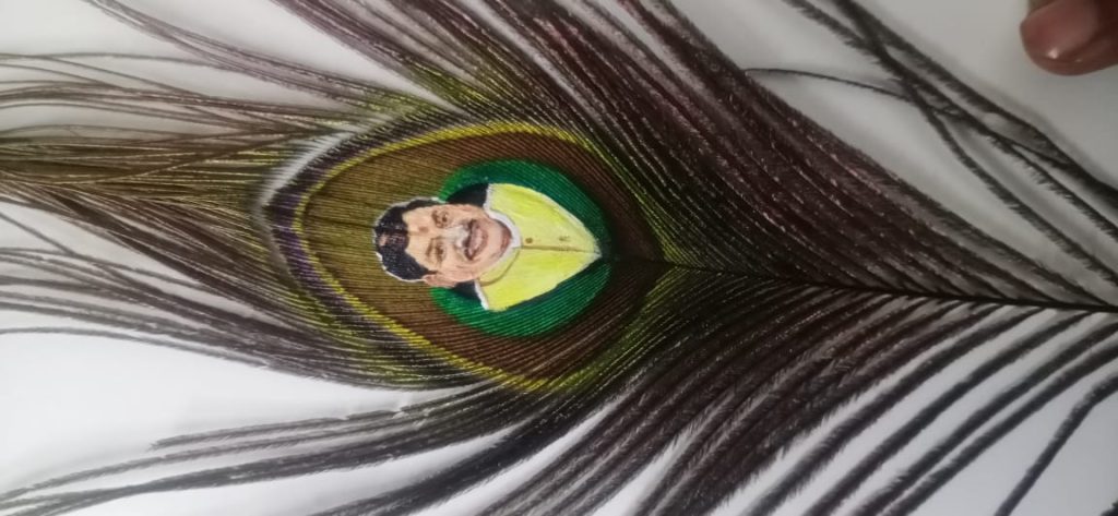 कर्ण मिश्रा, ग्वालियर। मध्य प्रदेश के मुख्यमंत्री डॉ मोहन यादव का एक जबरदस्त फैन सामने आया है, उसने अपनी कला की दम पर मुख्यमंत्री के प्रति अपने प्रेम और सम्मान को जाहिर किया है। ग्वालियर के रहने वाले हितेंद्र शाक्य फाइन आर्ट से मास्टर डिग्री हासिल किए हुए हैं। उनके हाथों का हुनर इतना जबरदस्त है कि उन्होंने मध्य प्रदेश के मुख्यमंत्री डॉ मोहन यादव का पोर्ट्रेट अपने हाथों से बनाया है। लेकिन यह पोर्ट्रेट बेहद खास है क्योंकि इसे किसी सामान्य कैनवास पर नहीं, बल्कि मोर पंख पर बनाया गया है।