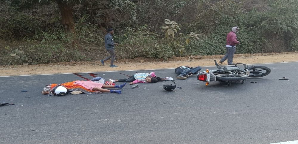 दरअसल घटना शहडोल जिले के देवलौंद थाना क्षेत्र के सेझहरी मोड़ के पास की है। तेज रफ्तार अज्ञात वाहन ने बाइक सवार परिवार को कुचल दिया जिससे दो बच्चों की मौके पर मौत हो गई और मां-बाप गंभीर रूप से घायल है। मृतकों में एक बेटी और एक बेटा शामिल है। मां बाप को गंभीर अवस्था में अस्पताल में भर्ती कराया गया है। मृत बच्चों और घायलों की अब तक पहचान नहीं हो सकी है। मामले की जानकारी लगते ही पुलिस मौके पर पहुंची। घायलों के अस्पताल और मृतकों के शव को पीएम के लिए भिजवाया। पुलिस मामले की जांच में जुट गई है।