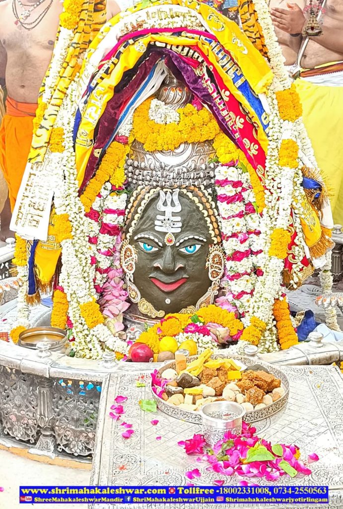बाबा महाकाल को फूलों की माला भांग, चंदन और आभूषण से श्रृंगार किया गया। महाकाल को भस्म चढ़ाई गई। भगवान महाकाल ने शेषनाग का रजत मुकुट, रजत की मुण्डमाल, रुद्राक्ष की माला के साथ सुगंधित पुष्प से बनी फूलों की माला धारण की। फल और मिष्ठान का भोग लगाया।