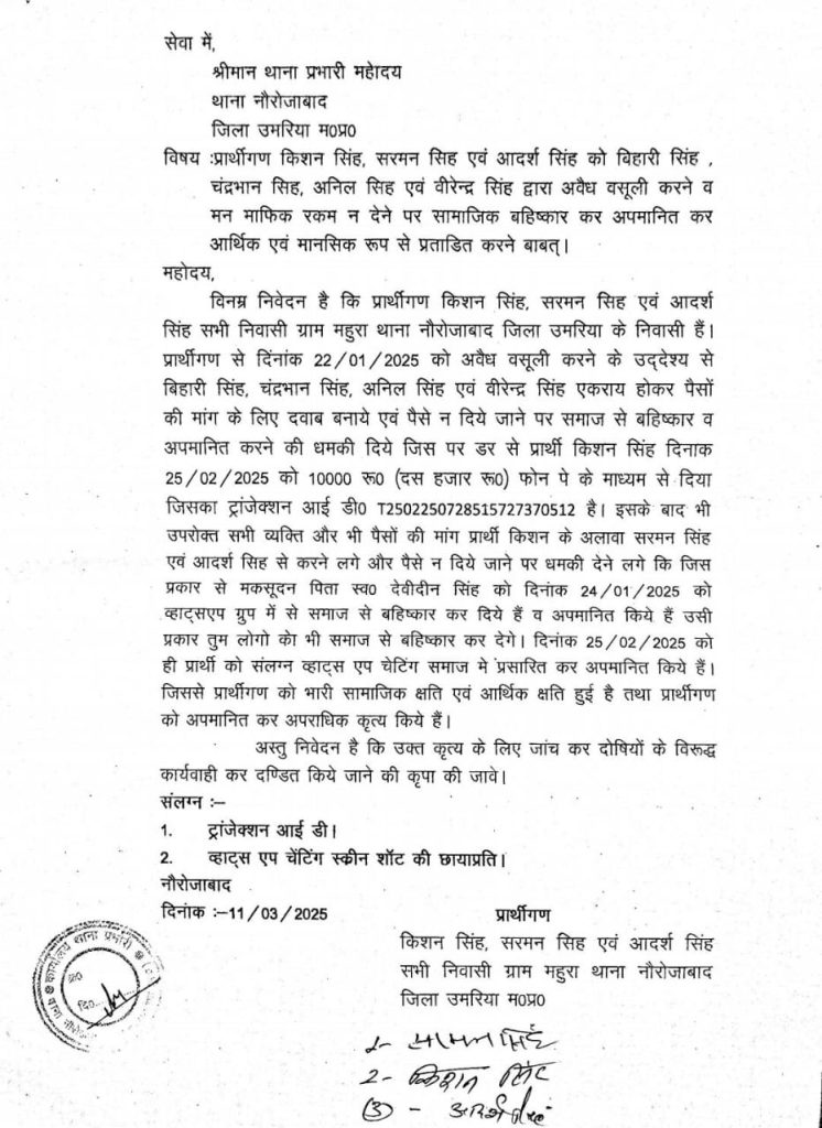उन्होंने कहा कि इस स्थिति में उनकी बेटी की शादी करना भी मुश्किल हो जाएगा. इससे पहले साल 2020 में मां के निधन के समय 2500 रुपए लेकर उन्हें समाज में शामिल किया गया था. इधर, थाने में दी गई शिकायत में बताया गया कि बिहारी सिंह, चंद्रभान सिंह, अनिल सिंह और वीरेंद्र सिंह पर मनमुताबिक चंदा मांगने का आरोप है. इस मामले में अतिरिक्त पुलिस अधीक्षक प्रतिपाल सिंह महोबिया ने मामले की जांच का भरोसा दिलाया है.