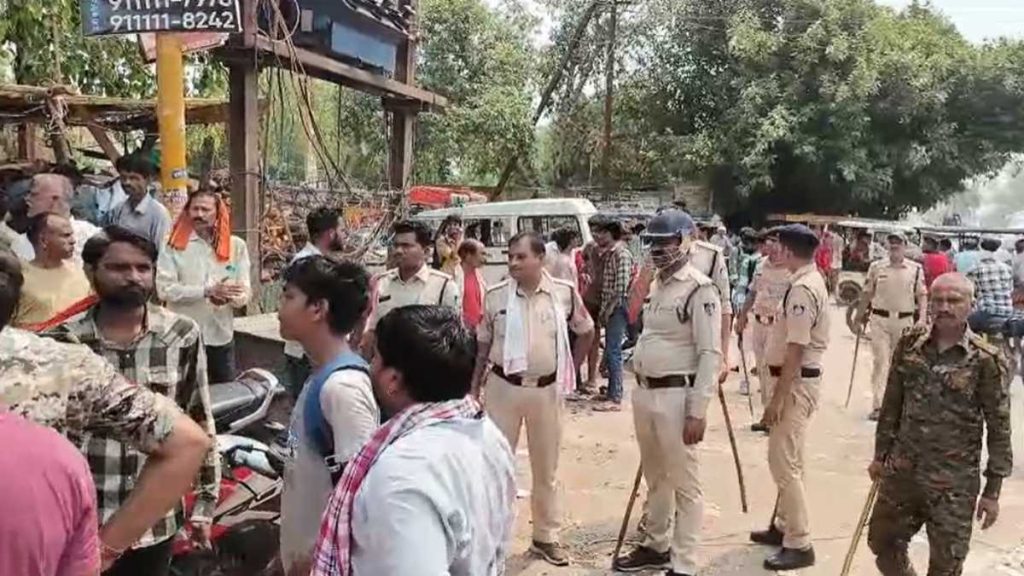 योगेश पाराशर, मुरैना। मध्यप्रदेश के मुरैना शहर में शनिवार को दो धार्मिक स्थलों पर विवाद की स्थिति बनी। माधौपुरा पुलिया पर स्थित आसमानी माता मंदिर में जानवर की बलि चढ़ाकर उसका मांस खाने का आरोप मंदिर के पुजारी व उसके परिजन पर लोगों ने लगाया। मामले को लेकर सैंकड़ों लोग जमा हो गए और जमकर हंगामा किया। पुलिस ने मामले में पुजारी व उसके चार परिजनों पर मामला दर्ज किया है। वहीं दूसरी तरफ टीआईटी काम्प्लेक्स स्थित एक मजार को रात के समय अज्ञात लोगों ने तोड़ दिया। जिसे लेकर सुबह हंगामा हुआ। दोनों जगह तचनाव की स्थिति को देखते हुए बड़ी संख्या में बल तैनात किया गया है।