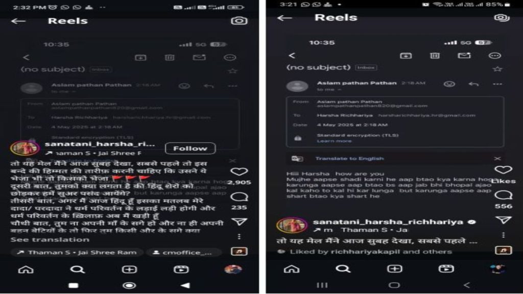 राकेश चतुर्वेदी, भोपाल। कुंभ मेले में बतौर साध्वी फेमस हुई और चर्चित को मुस्लिम युवक के द्वारा शादी का प्रस्ताव देने का मामला सामने आया है। सोशल मीडिया इनफ्लुएंसर हर्षा रिछारिया को मुस्लिम युवक असलम पठान ने मेल कर शादी का प्रस्ताव दिया है।
