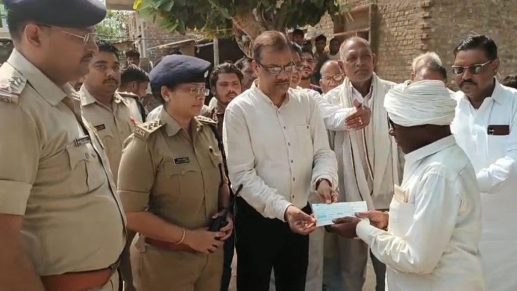 आपको बता दें कि 14 अप्रैल की रात दौजीपुरा गांव में संजय जाटव की गोली मारकर हत्या कर दी गई थी। पुलिस ने 8 में से सात आरोपियों को गिरफ्तार कर लिया है। वहीं आज प्रशासन व पुलिस ने पीड़ित परिवार को 4 लाख 12 हजार की राहत राशि दी। प्रशासन ने मृतक पिता चिम्मन जाटव को राहत राशि का चेक सौंपा है।