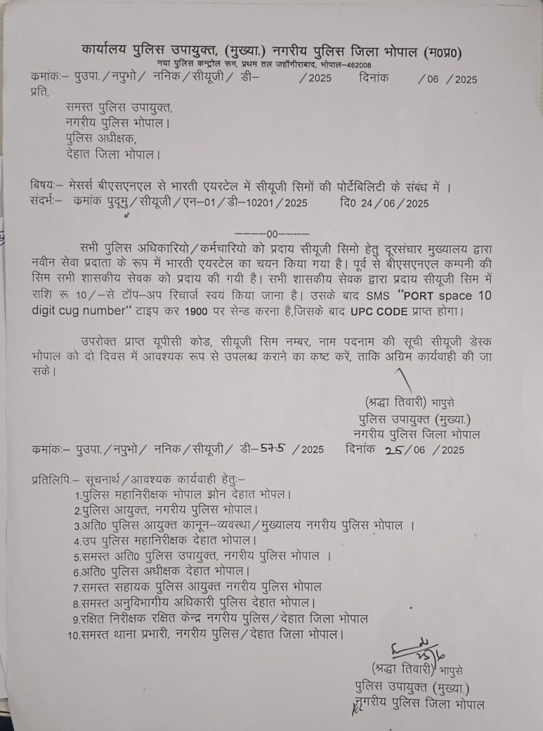 मध्य प्रदेश पुलिस बीएसएनएल (BSNL) से करीब चार दशक से सेवाएं ले रही हैं। उसकी तरफ से ही पुलिस विभाग को कई बार सिम जारी की गई है। कई वीआईपी नंबरों के साथ अधिकारियों और थानों के अनुसार नंबर भी बीएसएनएल ने मुहैया कराएं हैं। लेकिन, कई दिनों से आम आदमियों की ही तरह पुलिस विभाग भी खराब नेटवर्क के कारण कई तरह की तकनीकी समस्याओं से जूझ रहा था। इस समस्या को देखते हुए एसएसपी वॉयरलैस विजय कुमार खत्री के आदेश पर एक सर्कुलर जारी किया गया है।
