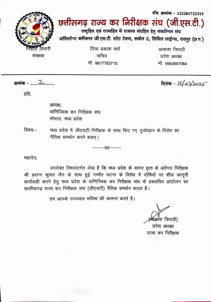 उमेश यादव, सागर। मध्य प्रदेश के सागर जिले में जीएसटी अधिकारी के साथ मारपीट का मामला सामने आया है। इतना ही नहीं अफसर को जान से मारने की धमकी भी दी गई। बताया जा रहा है कि वाणिज्यिक कर विभाग के अधिकारी टैक्स वसूली और सत्यापन के लिए पहुंचे थे। इस घटना के विरोध में प्रदेश के निरीक्षकों ने काम का बहिष्कार किया है।