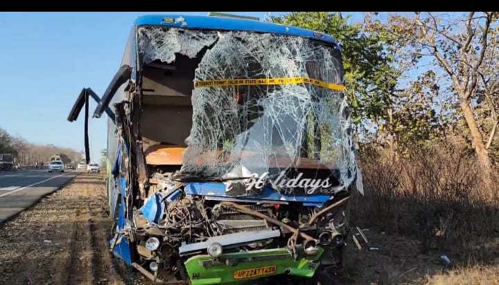 खड़े ट्रक में जा घुशी महाकुंभ जा रही बस