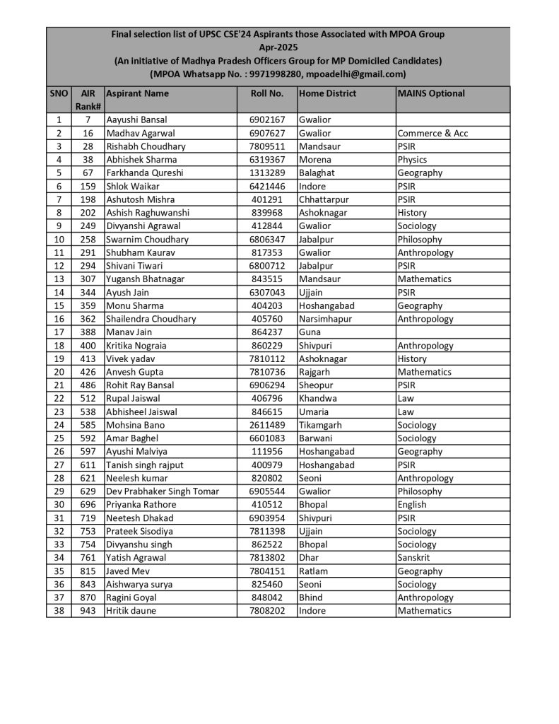 यहां देखें एमपी के चयनित अभ्यर्थियों की पूरी लिस्ट