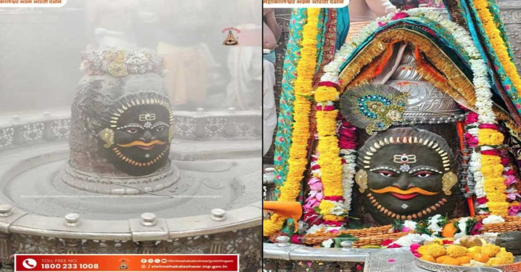भस्म अर्पण से पहले प्रथम घंटाल बजाकर हरिओम का जल अर्पित किया गया और मंत्रोच्चार के बीच भगवान का ध्यान किया गया। कपूर आरती के बाद ज्योतिर्लिंग को कपड़े से ढांककर भस्म रमाई गई। इसके बाद शेषनाग का रजत मुकुट, रजत की मुण्डमाल, रुद्राक्ष की माला और पुष्पों की मालाएं अर्पित की गईं। आभूषणों से सुगंधित पुष्पों से भगवान का अलंकरण हुआ।