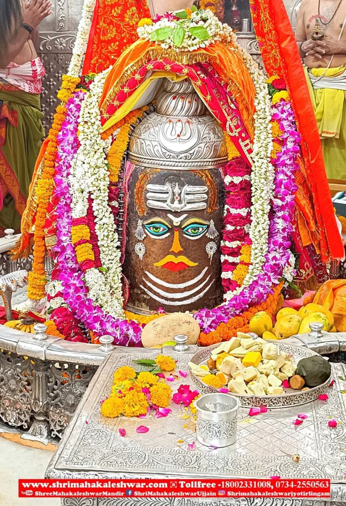 बाबा महाकाल के मस्तक पर चंद्र और त्रिशूल अर्पित कर फूलों की माला भांग, चंदन और आभूषण से श्रृंगार किया गया। महाकाल को भस्म चढ़ाई गई। भगवान महाकाल ने शेषनाग का रजत मुकुट, रजत की मुण्डमाल, रुद्राक्ष की माला के साथ सुगंधित पुष्प से बनी फूलों की माला धारण की। फल और मिष्ठान का भोग लगाया।